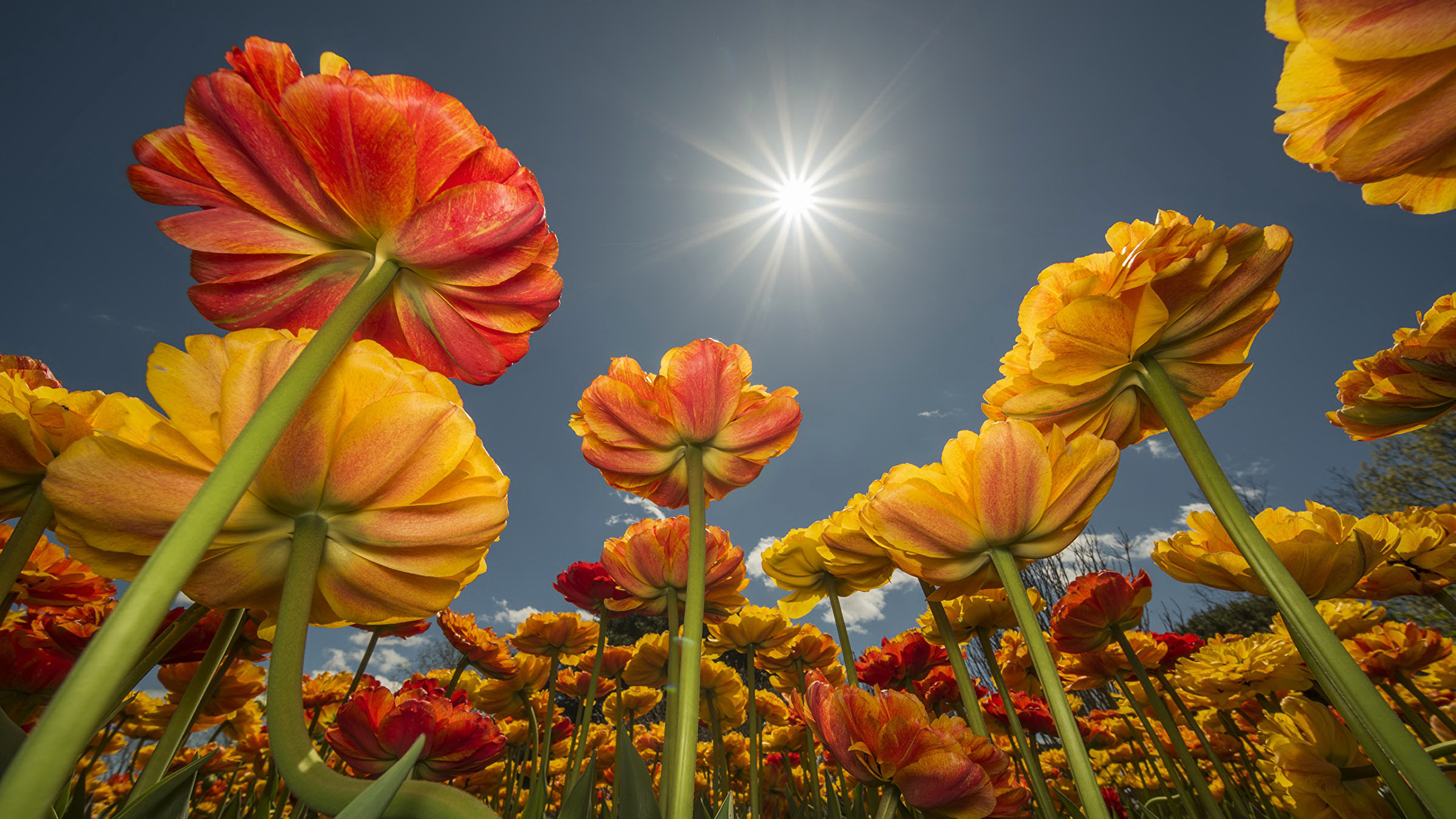 Tulpen Sonne Untersicht Ansicht von unten Blumen hintergrundbilder 2560x1440
