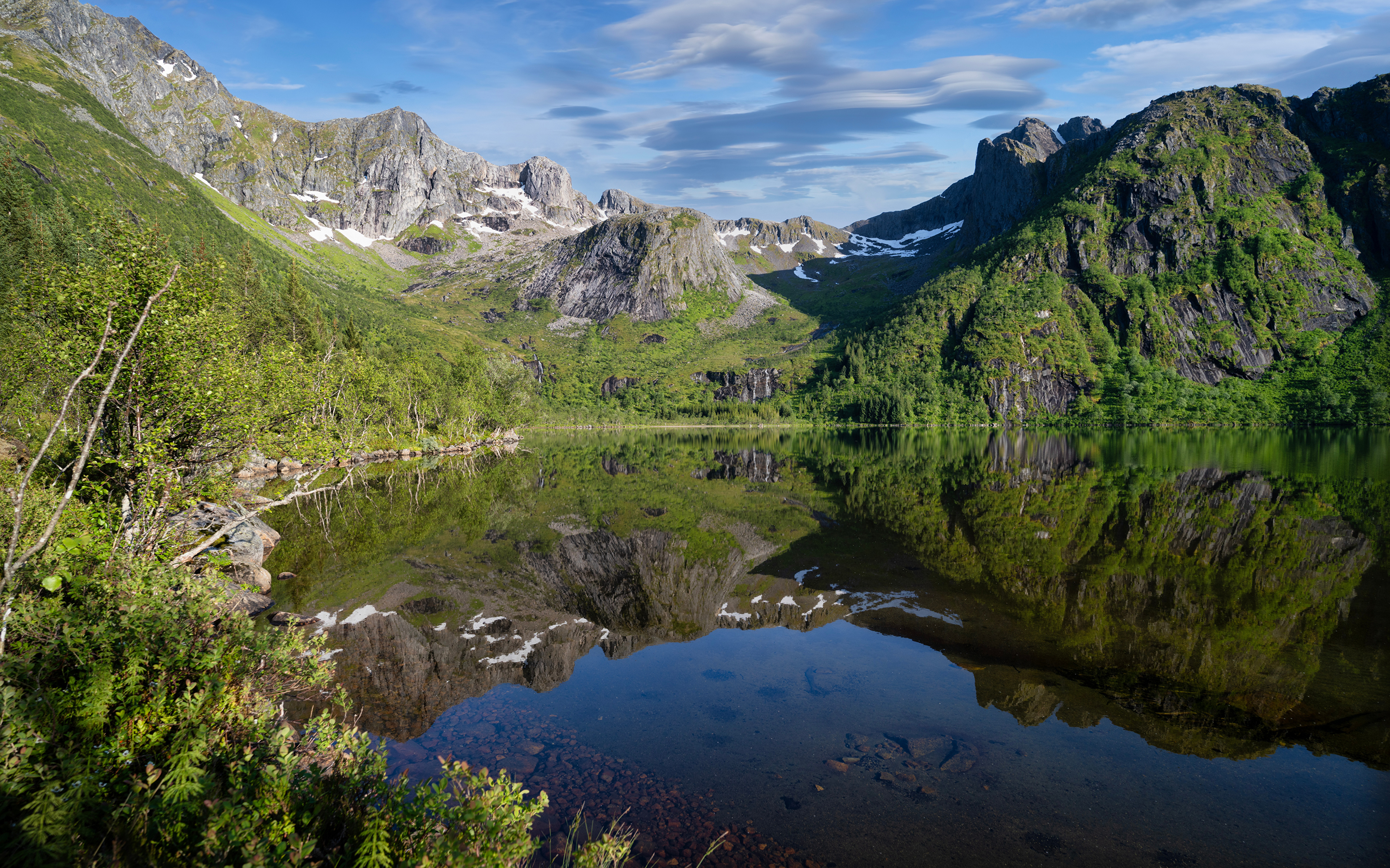 Norwegen Lofoten Gebirge See Landschaftsfotografie Spiegelung Spiegelbild Natur hintergrundbilder 3840x2400