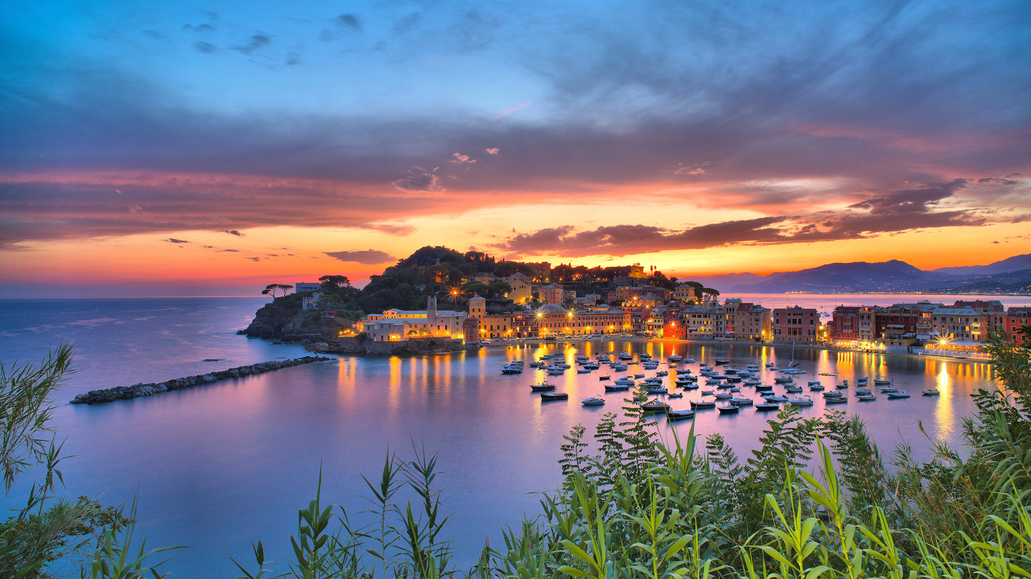 Italy Liguria Sunrises and sunsets Motorboat Sestri Levante, Bay Silence Cove Cities photo 2560x1440
