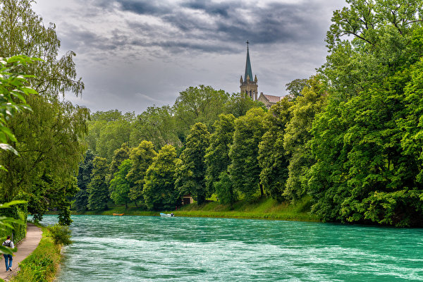 Switzerland Bern Rivers Trees Cities photo 600x400