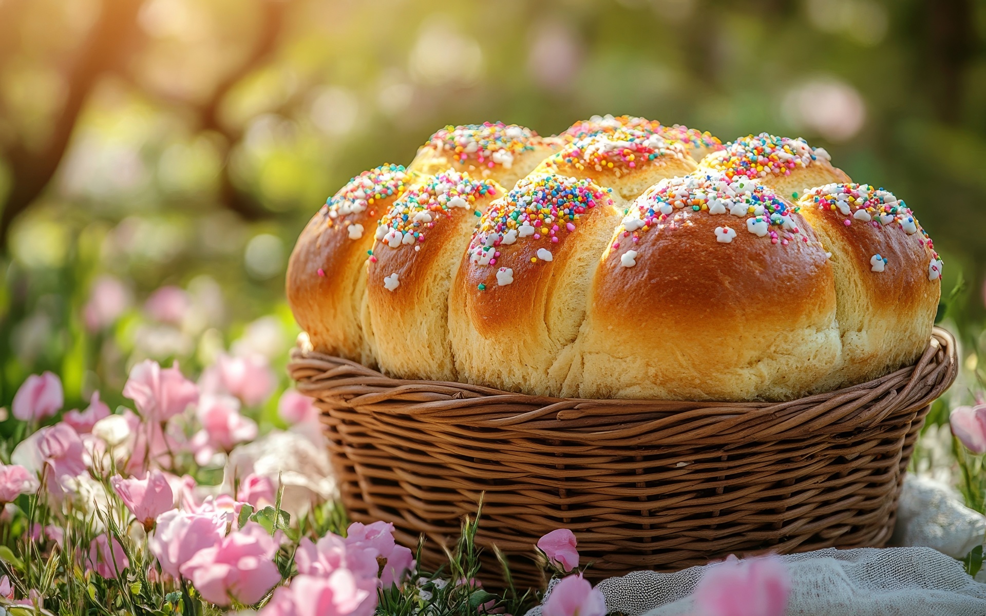 Pascua Kulitsch Cesta de mimbre Alimentos imagenes 1920x1200