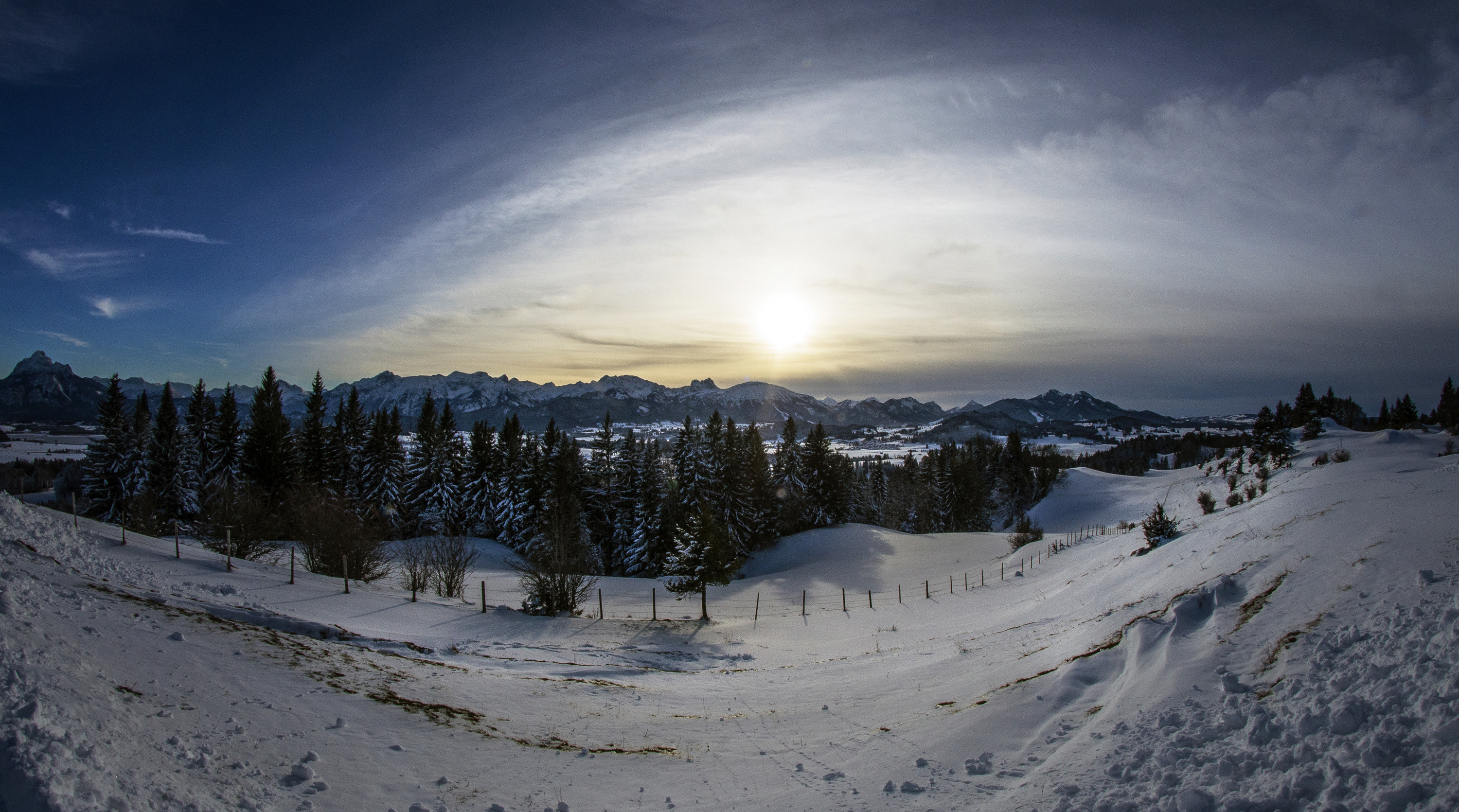 ドイツ、冬、山、朝焼けと日没、Goimenen、バイエルン州、雪、トウヒ属、自然、写真、600x334