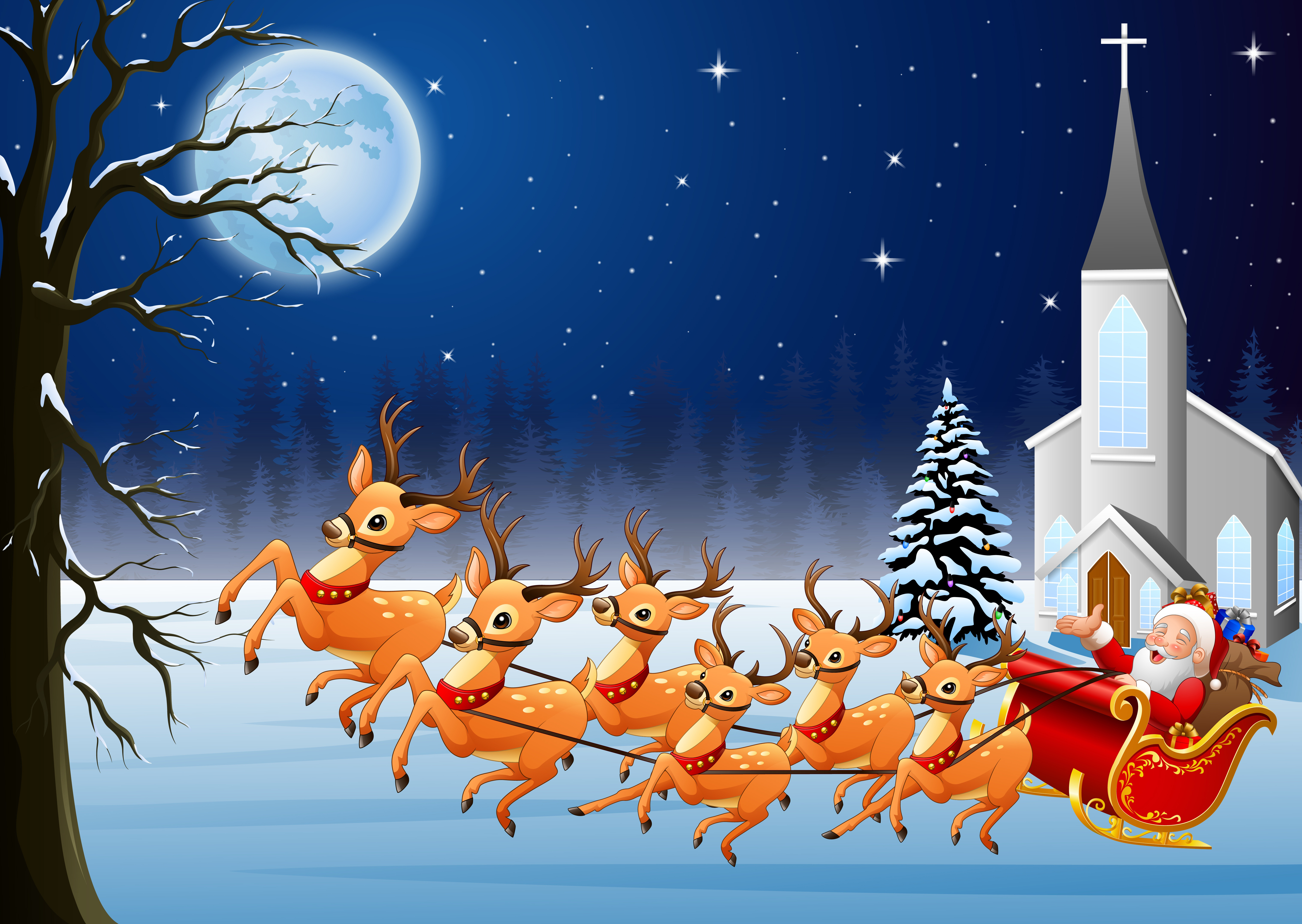 ベクタ形式、新年、シカ、月、ジェド・マロース、そり、雪、写真、6070x4313