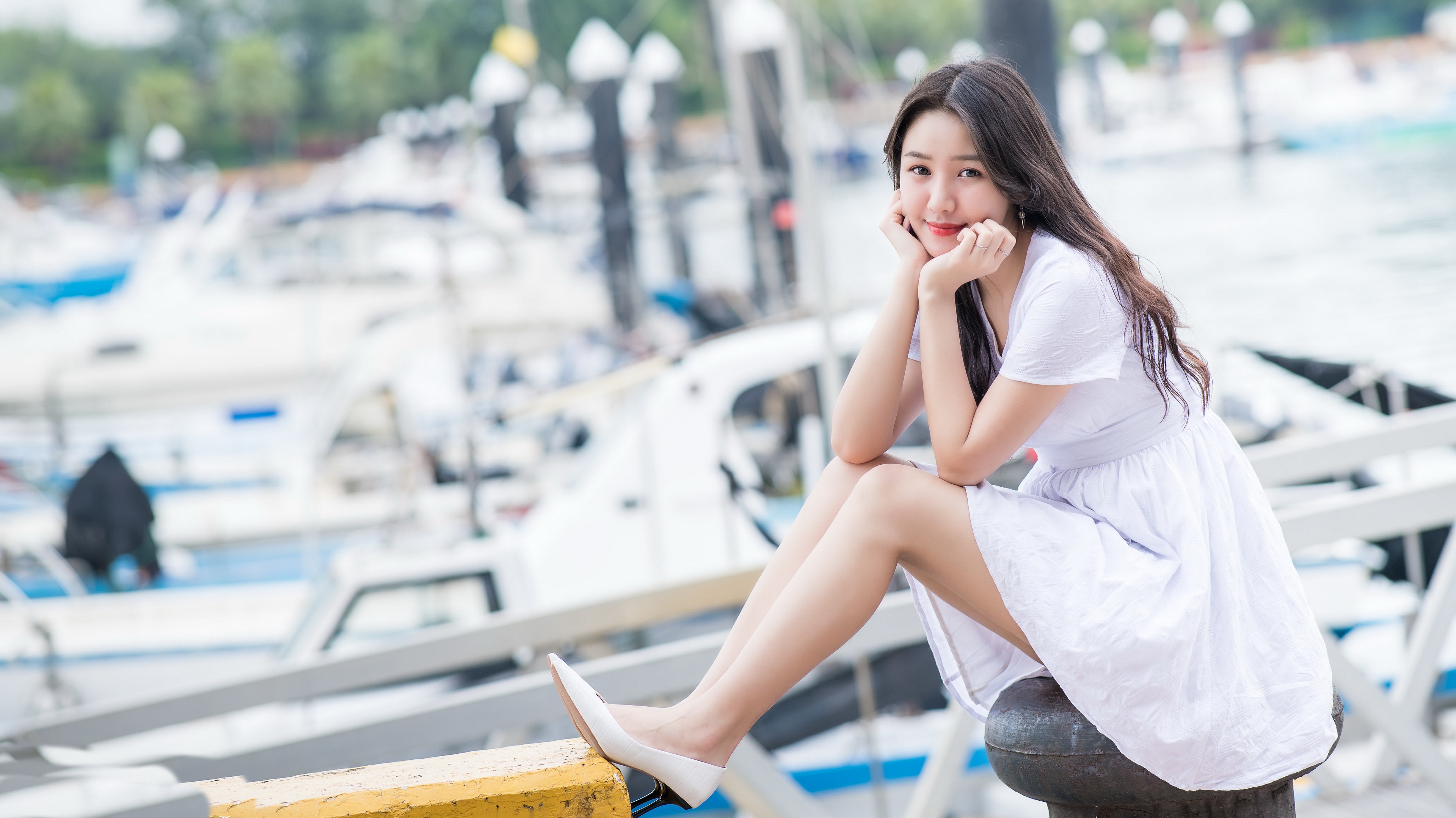 アジア人、ドレス、茶色の髪の女性、手、座っ、脚、ボケ写真、少女、写真