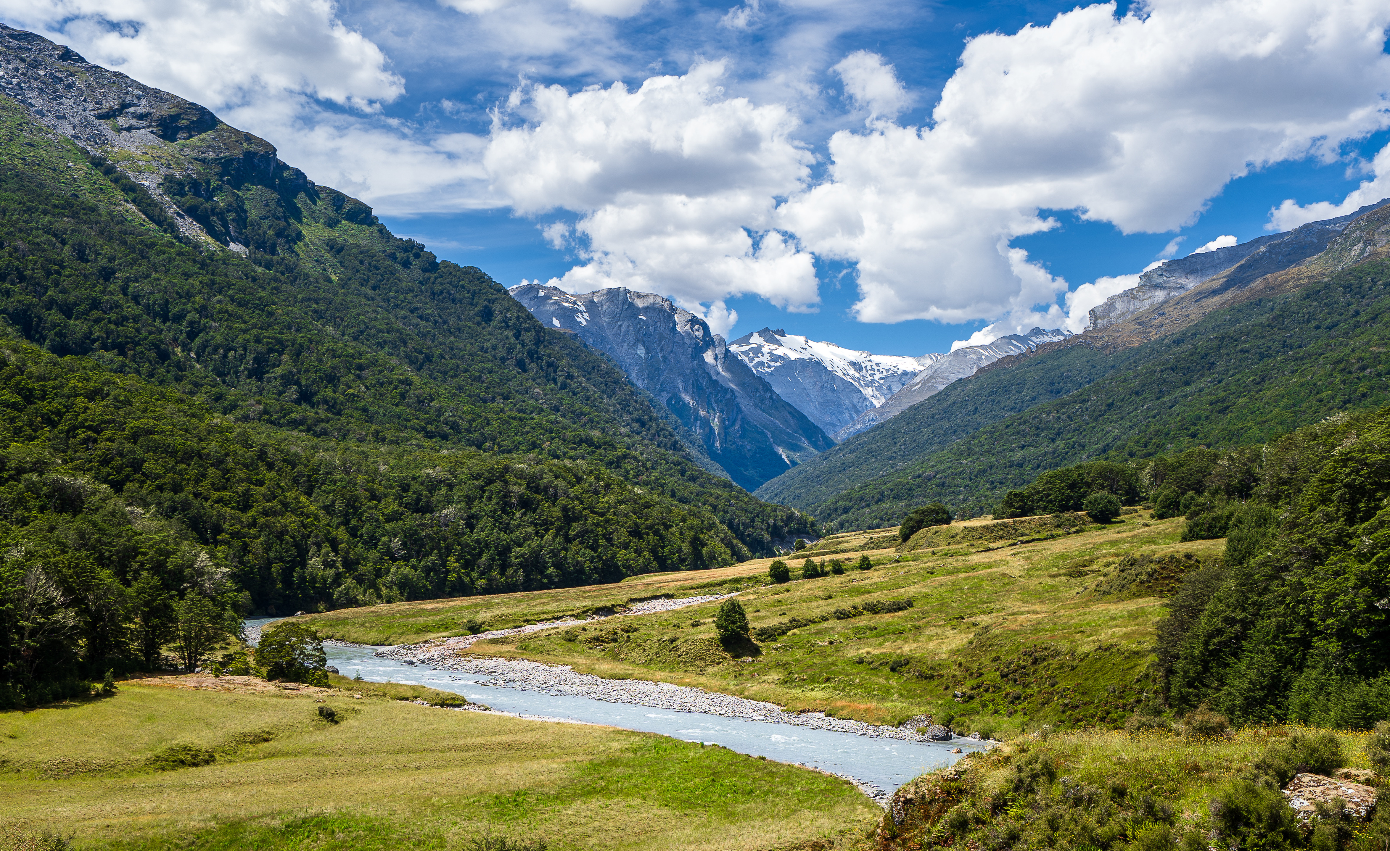 ニュージーランド、山、川、雲、谷、自然、写真