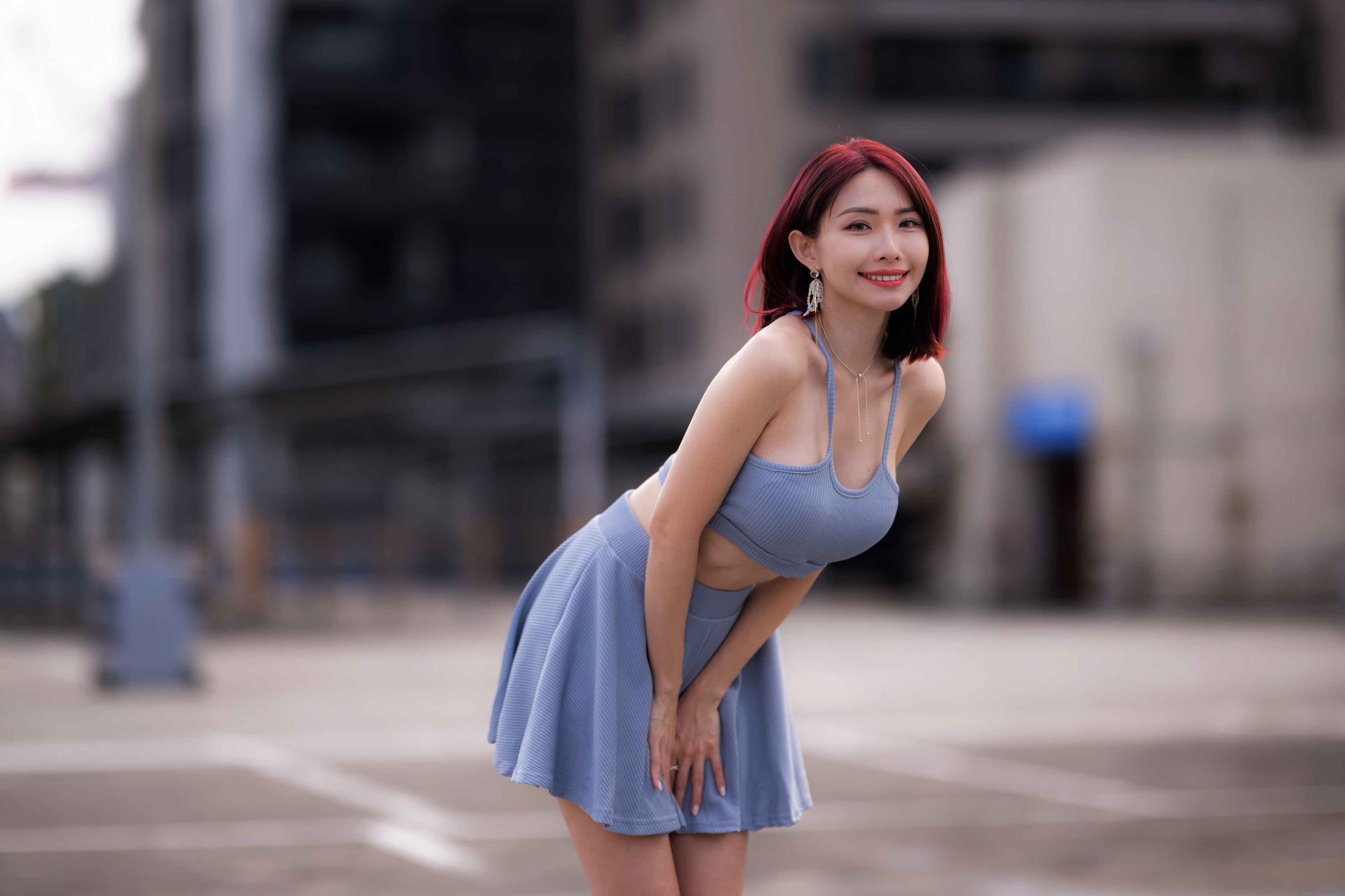 アジア人、ポーズ、微笑み、ランニングシャツ、スカート、ボケ写真、少女、写真