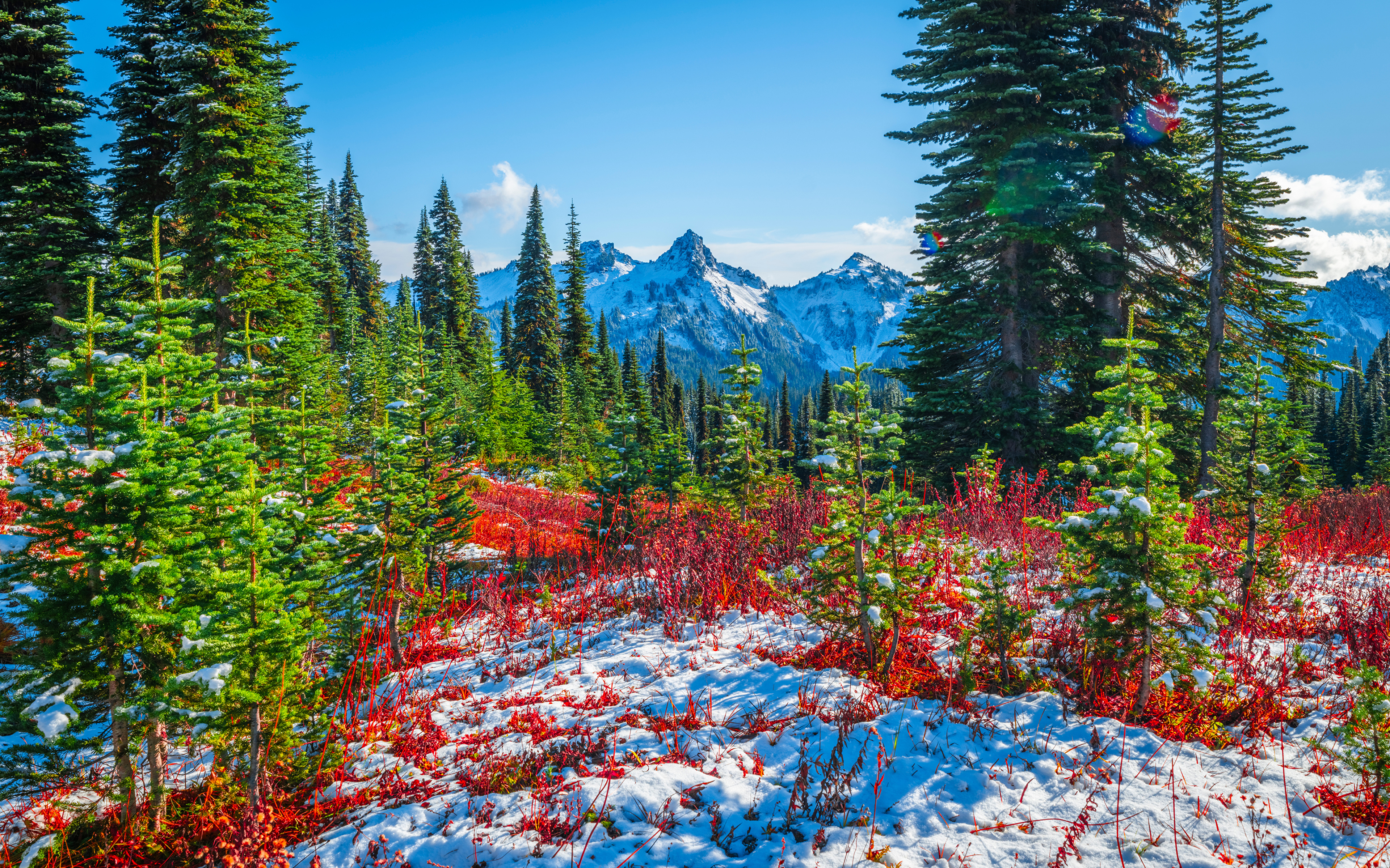 アメリカ合衆国、公園、山、Mount Rainier National Park、トウヒ属、雪、自然、写真、3840x2400