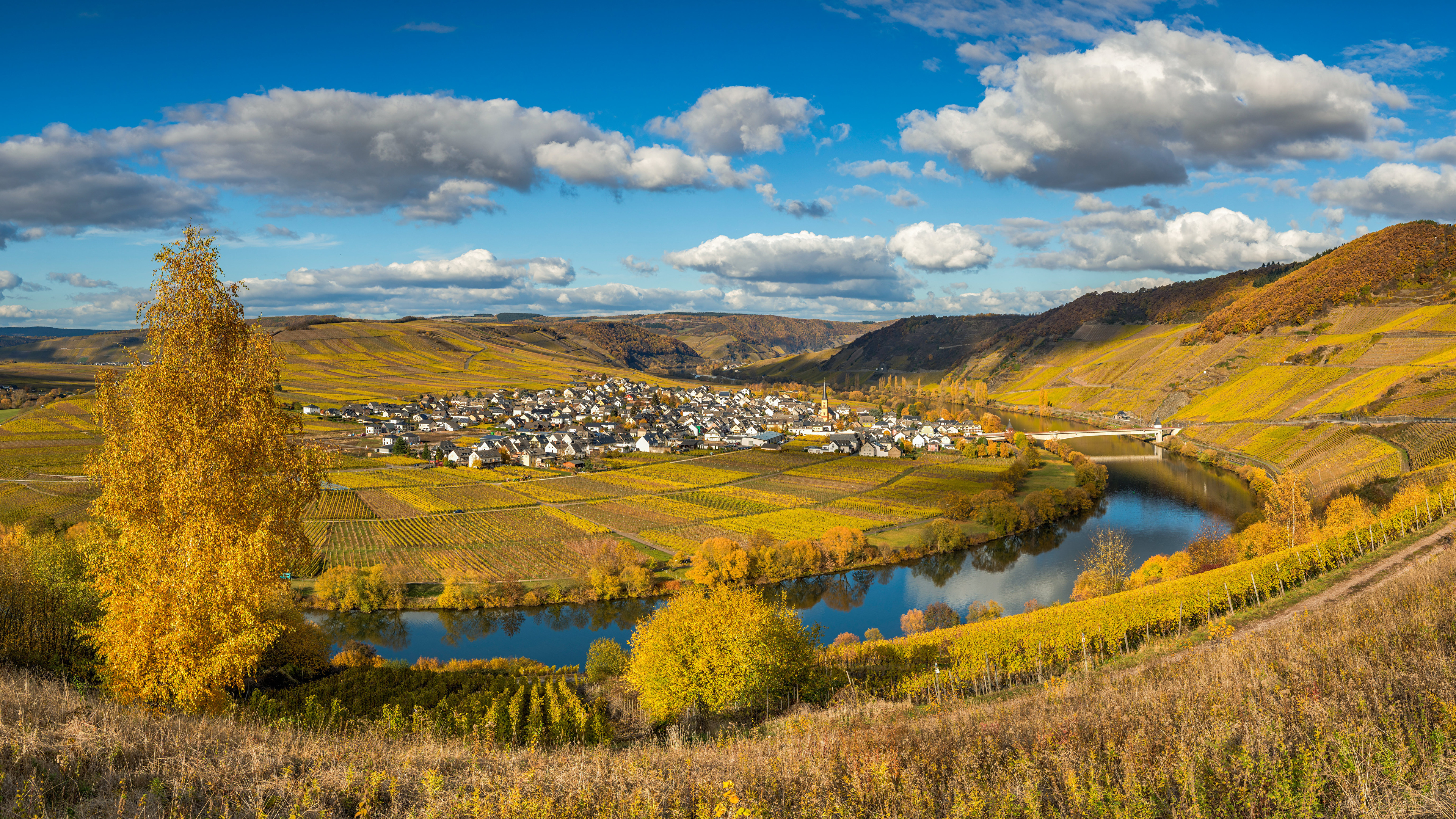 ドイツ、秋、風景写真、川、住宅、葡萄園、全景圖、Moselle、雲、自然、写真、3840x2160