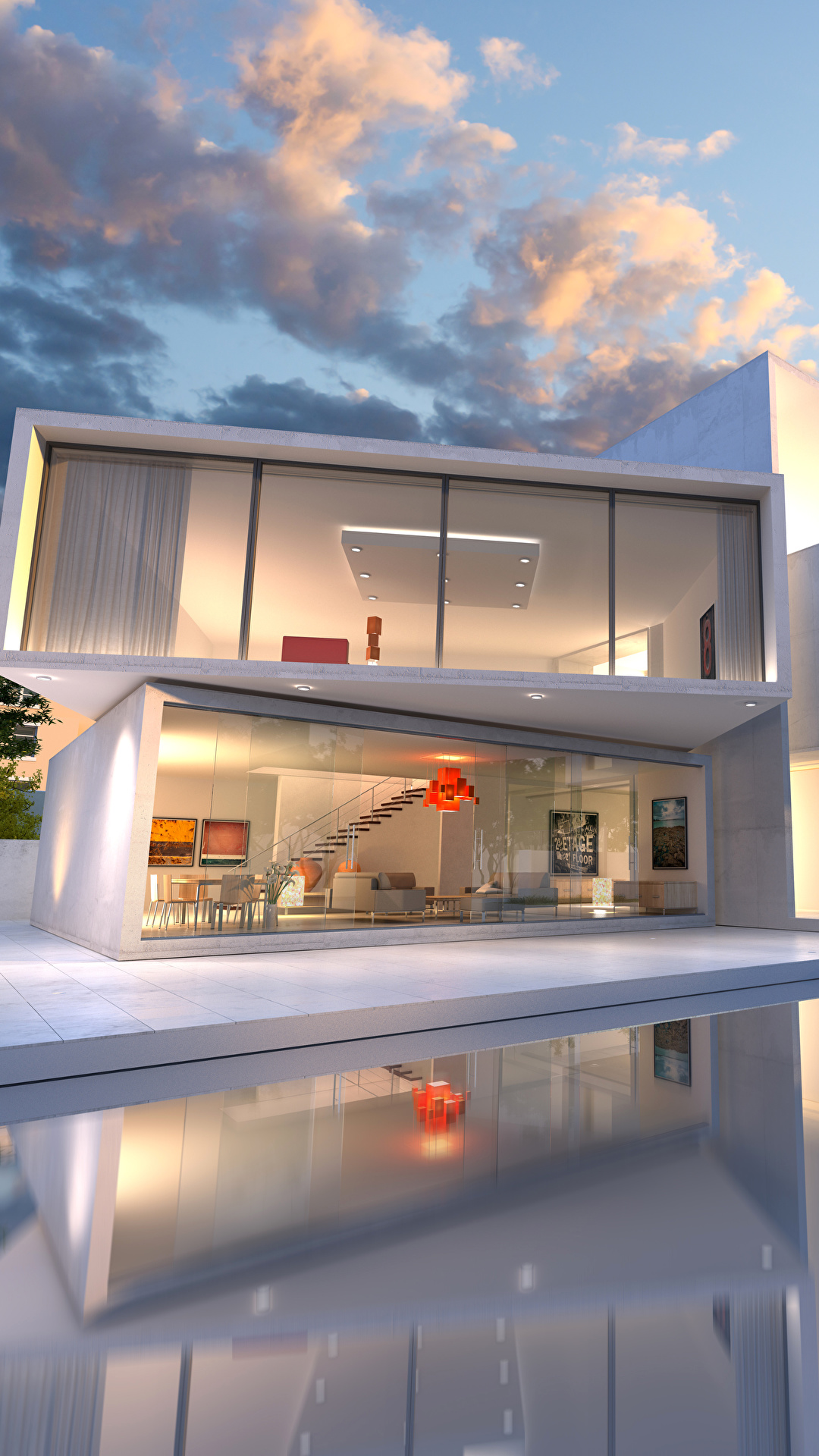Huizen Herenhuis Ontwerp Zwembad Wolken Steden 3D graphics foto's 1080x1920 3D afbeelding, 3D afbeeldingen, een stad, gebouw, gebouwen achtergrond afbeelding download op het bureaublad
