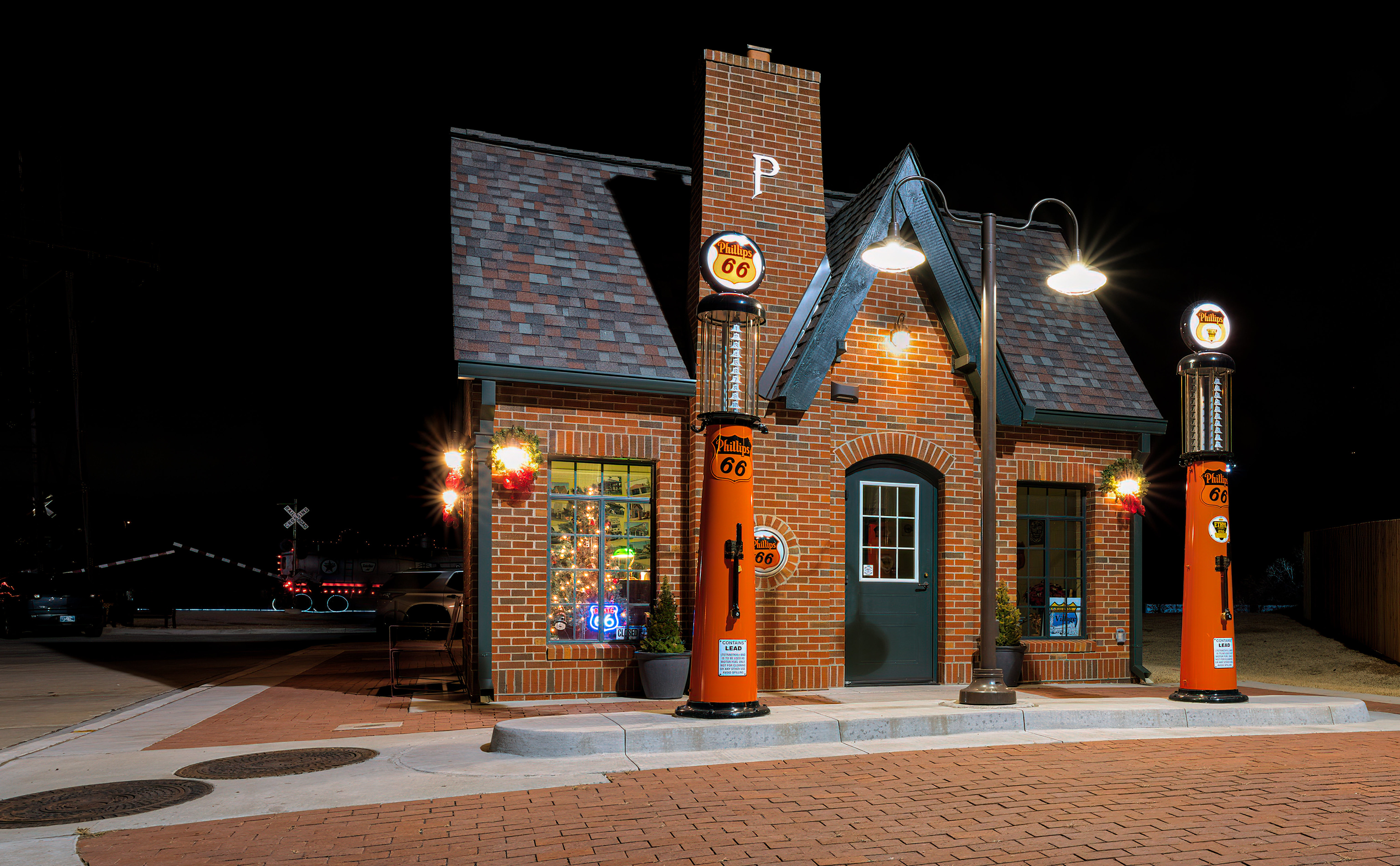 Amerika Huizen Red Fork, Oklahoma, Phillips 66 Station Nacht Straatverlichting Steden foto's een stad, gebouw, gebouwen, verenigde staten achtergrond afbeelding download op het bureaublad PC, Tablet