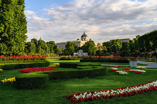 Oostenrijk Wenen Parken BlumenPark Gazon Struiken Ontwerp Natuur foto's 600x399