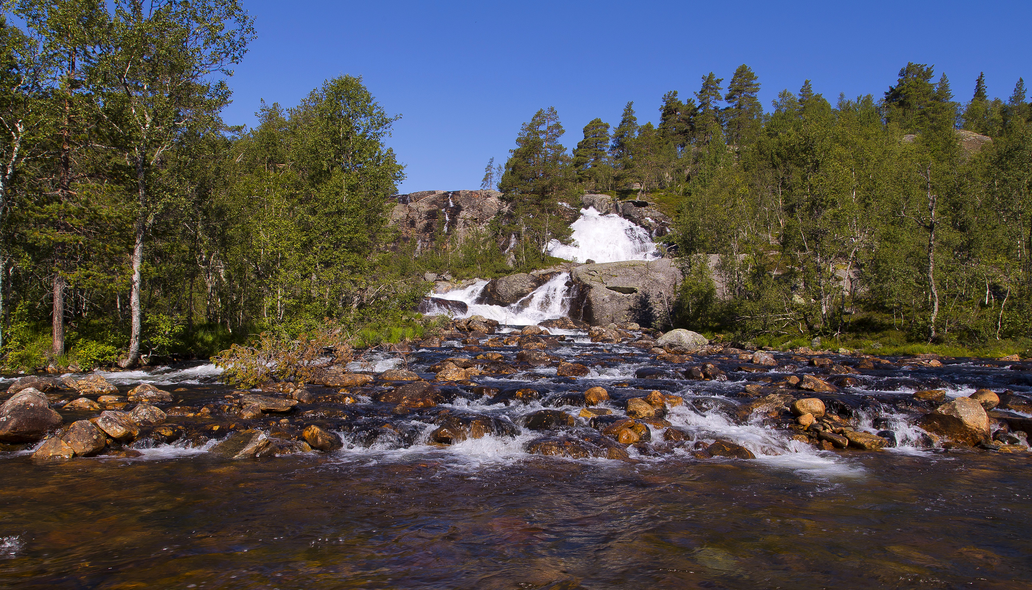 Norwegia Wodospady Kamienie Rzeki Natura zdjęcia 3500x2000