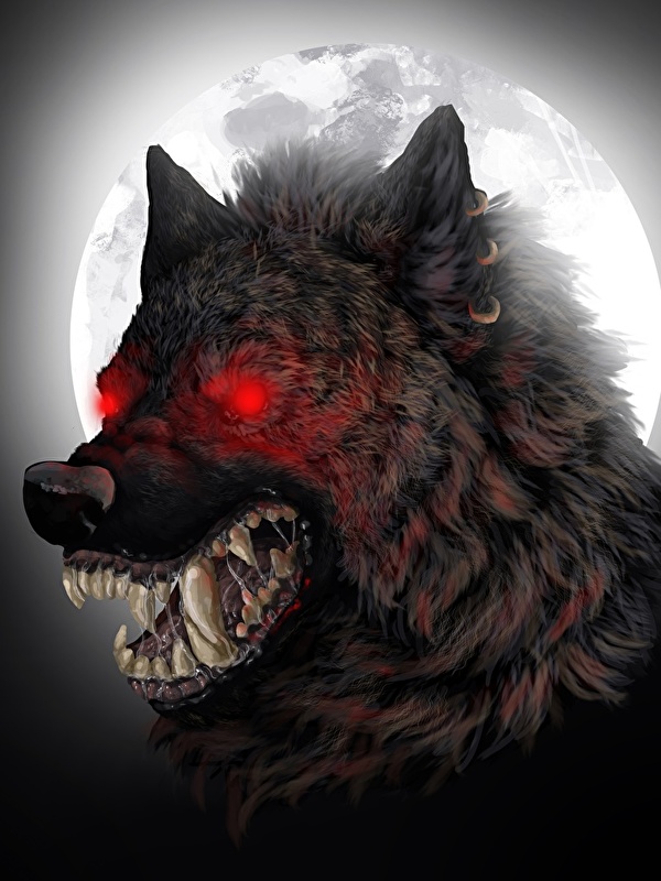 Potwór Kły Wilkołak wilk Warczy Noc Księżyc Fantasy zdjęcia 600x800