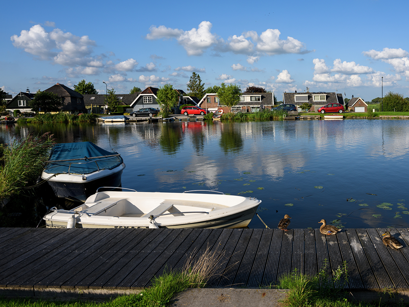 Holandia Domy Rzeki Przystań Kaczki Łodzie De Hoef Miasta zdjęcia 1600x1200 miasto, rzeka, budynki, budynek, kaczka, łódź tapety zdjęcia pobierz na pulpit PC, Tablet