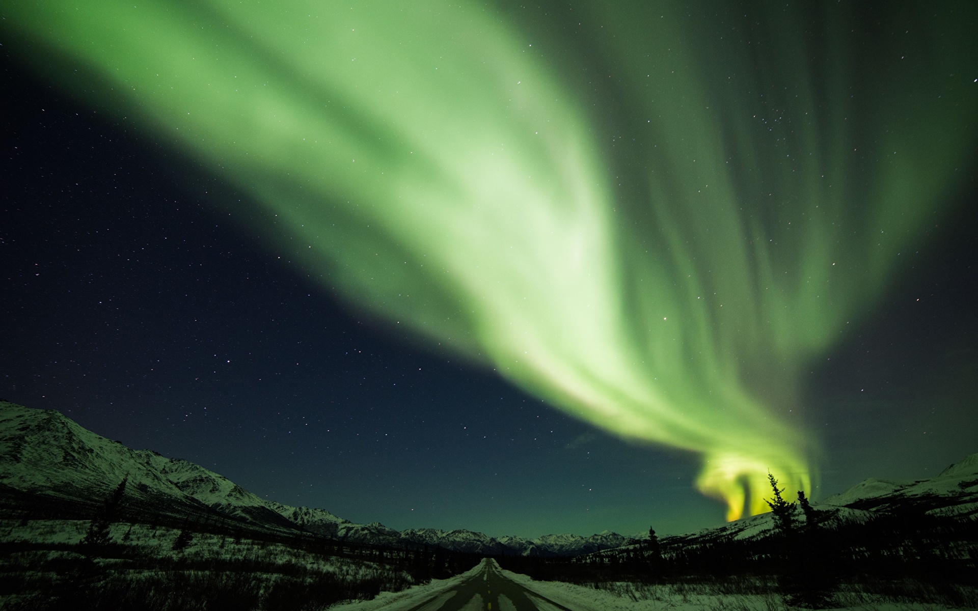 Zima Drogi Noc Zorza polarna Śnieg Natura zdjęcia 1920x1200