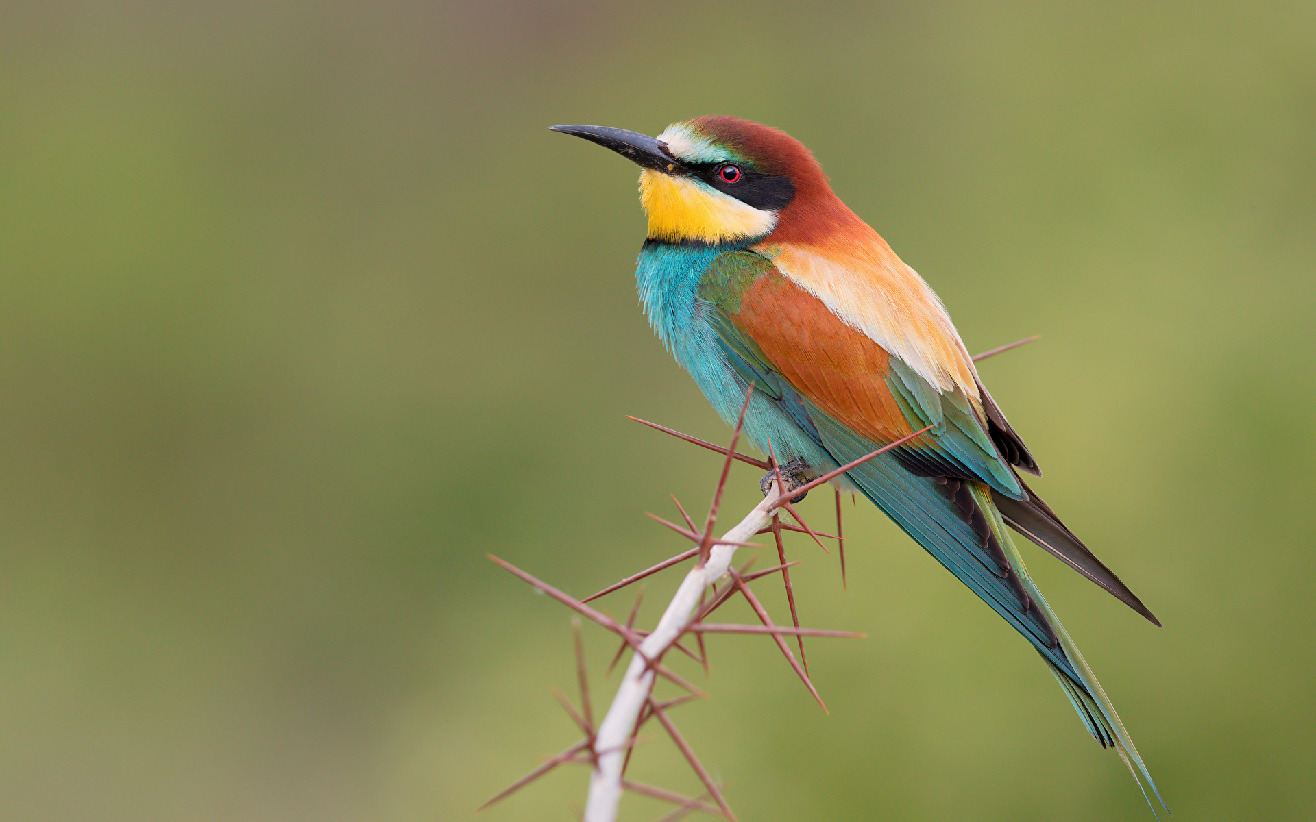 Ptaki Z bliska merops apiaster Gałęzie Zwierzęta zdjęcia 1920x1200