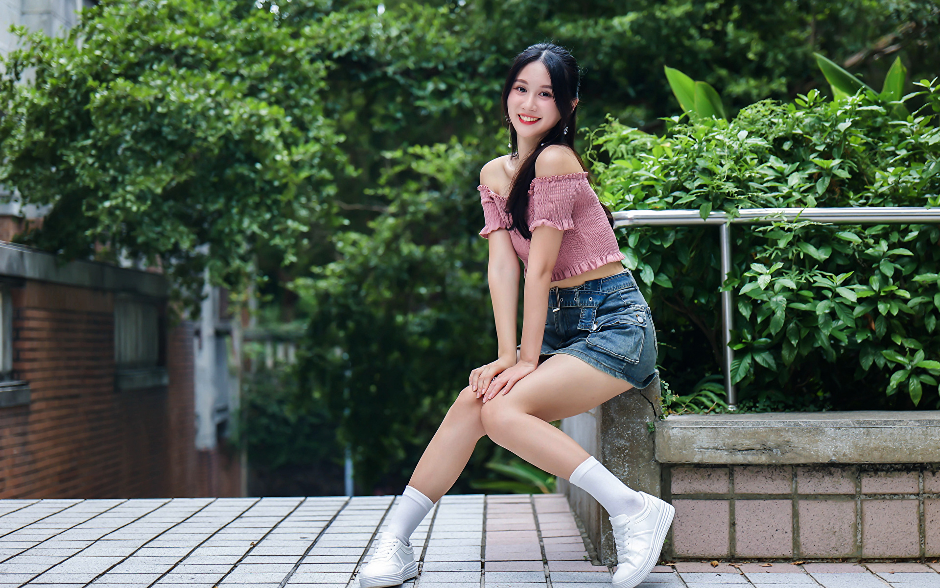 Azjaci Siedzi Nogi Spódnica Bluzka Uśmiech Brunetka Dziewczyny zdjęcia 1920x1200