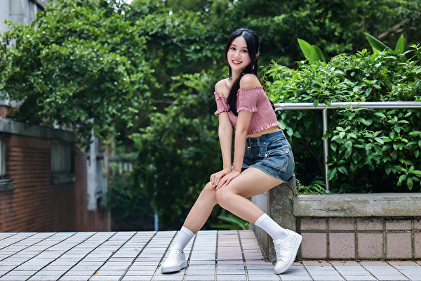dziewczyna, młoda kobieta, młode kobiety, azjatycka, siedzą tapety zdjęcia pobierz na pulpit PC, Tablet