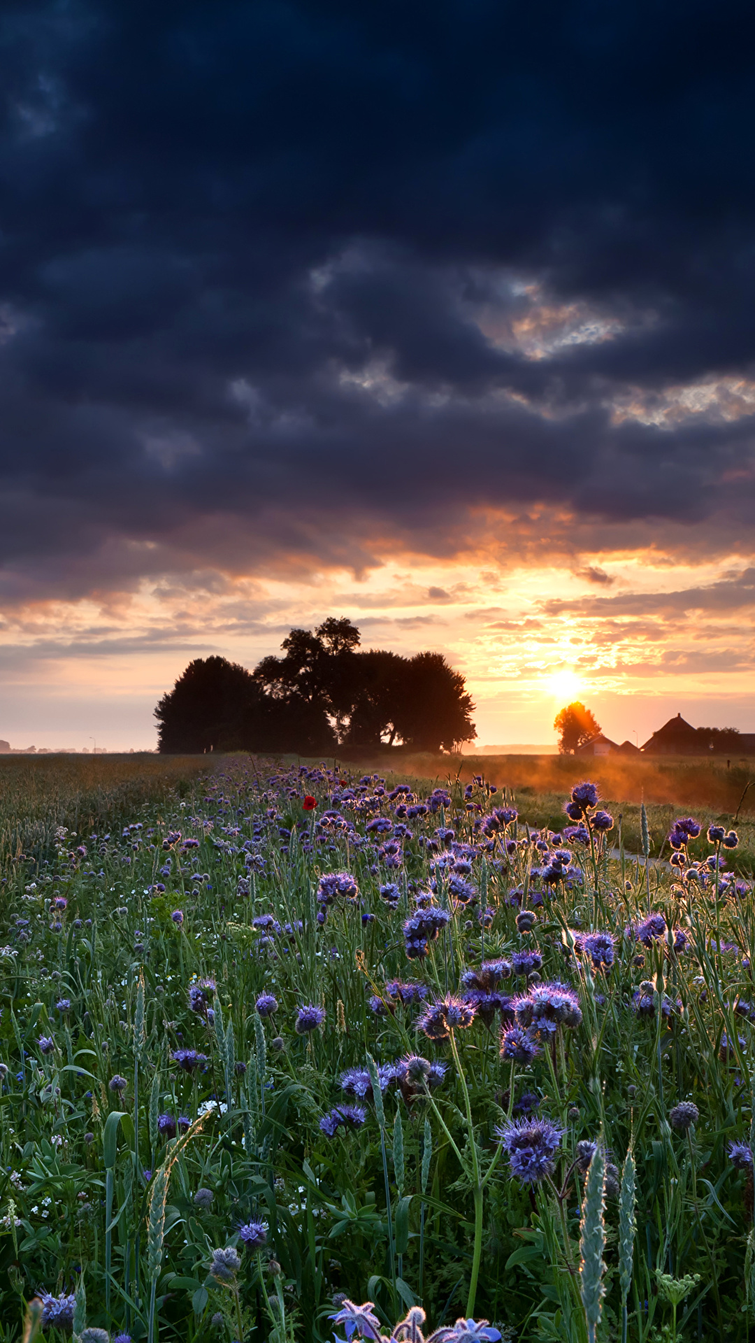 Поля Рассветы и закаты Небо Облака Природа фото 1080x1920