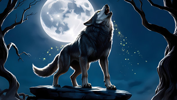 животное, волк, Ночные, в ночи, ночью, луны, луной обои картинки скачать на рабочий стол ПК, планшета
