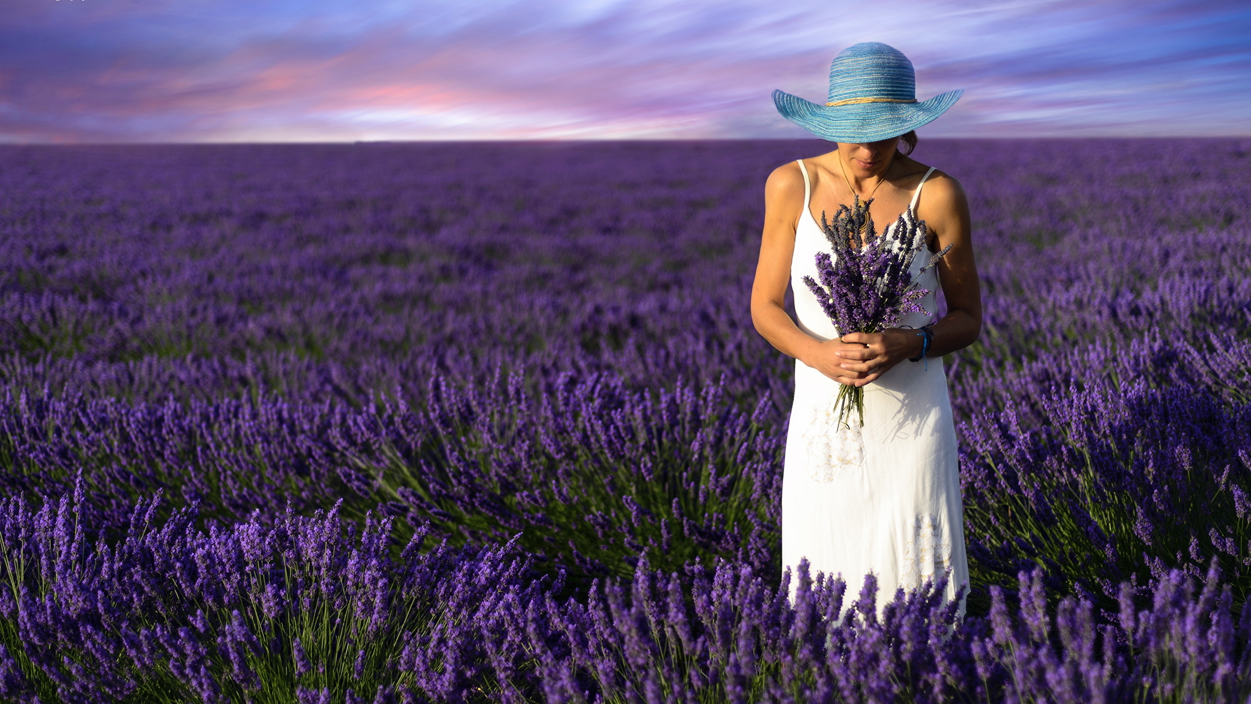 ung kvinna, fält, lavendelsläktet bilder foton ladda ner på skrivbordet PC, Surfplatta