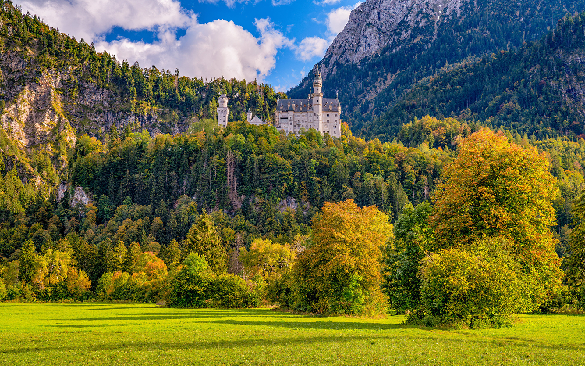Tyskland Berg Borg Neuschwanstein Skogar Bayern Natur foton 1920x1200